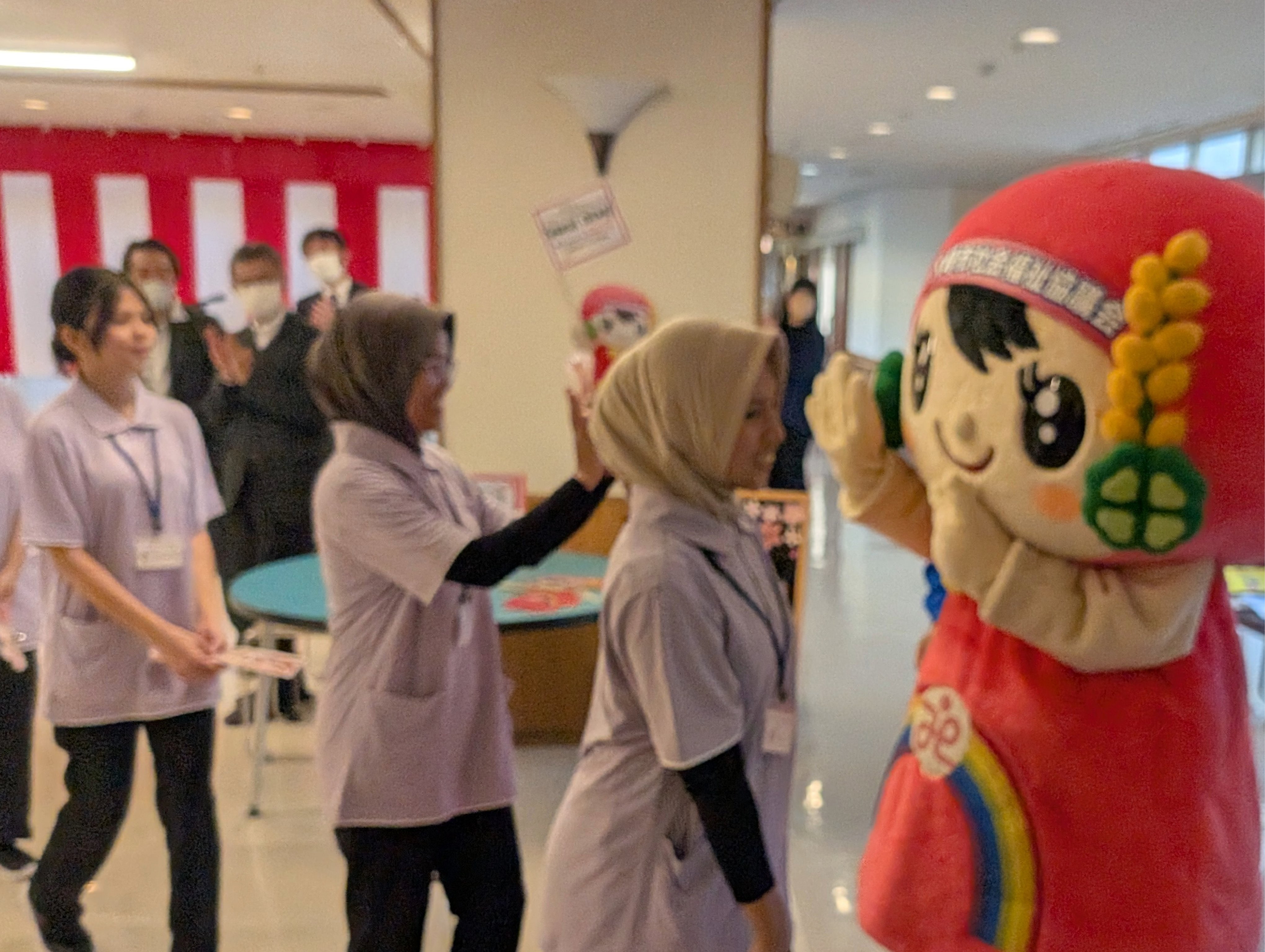 おおさきちゃんがインドネシアから来た皆さんを歓迎したよ!(セラマット・ダタン!)