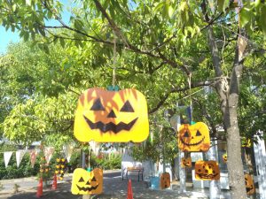 令和7年10月1日~31日までの期間、大崎市社協松山支所(松山保健福祉センターさんさん館)の中庭にて『ハロウィンガーデン』が開催されています。
