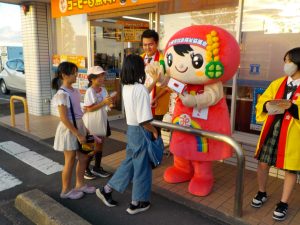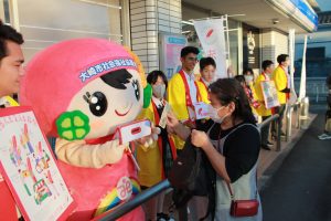 また、会場におおさきちゃんが登場すると、子供たちも笑顔で握手をしながら募金を行っていました。
