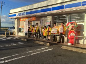 今年も、10月1日から赤い羽根共同募金運動が全国一斉に開催されています。松山地域では、10月8日(水)にローソン松山町金谷店で街頭募金を実施しました。