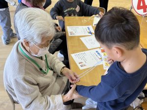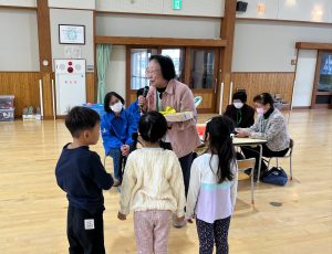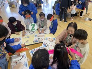 園児たちは、「なないろ会」の皆さんから遊び方を教わりながら、はじめて体験する遊びに目を輝かせていました。