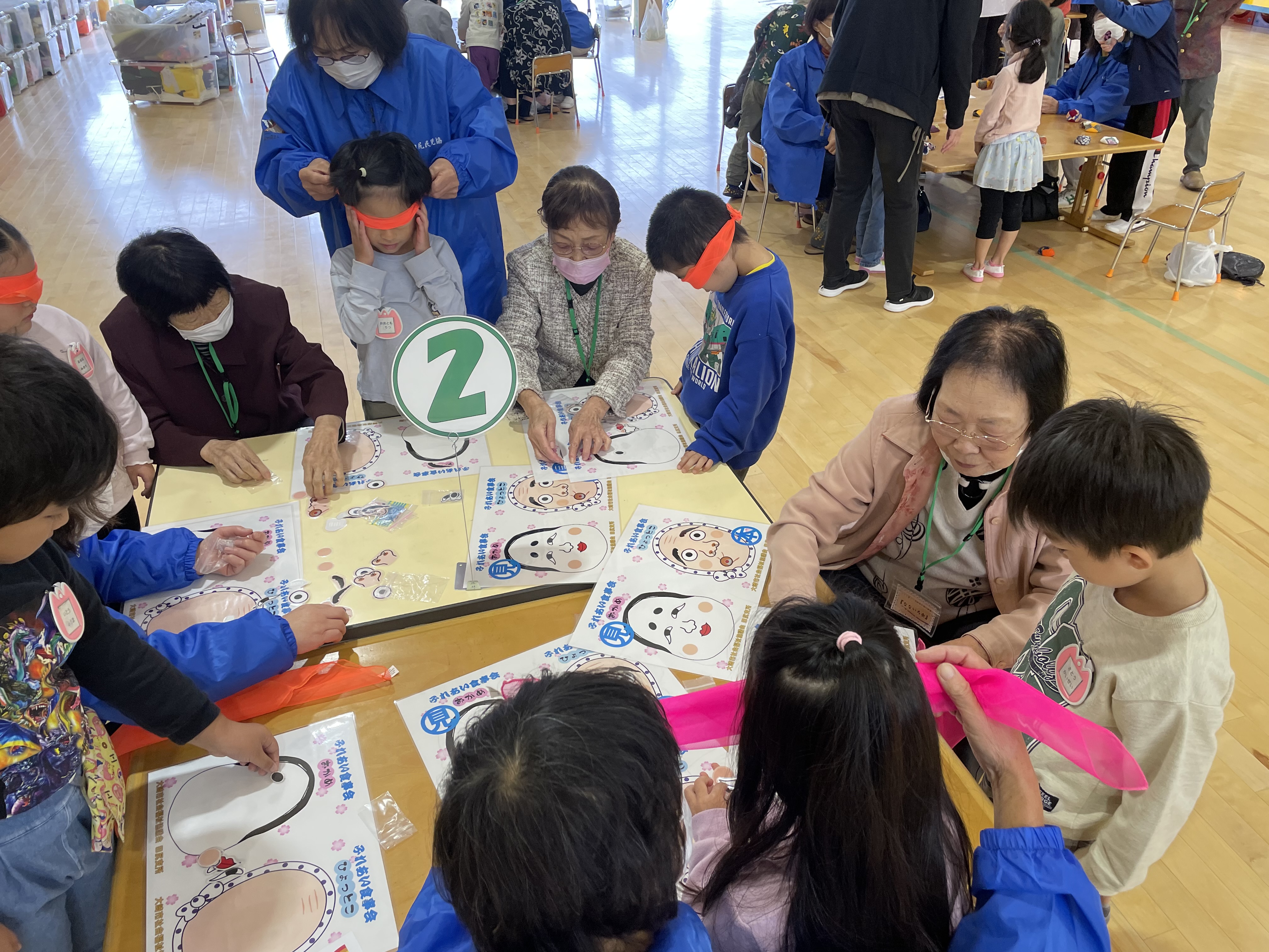 当日は、民生委員児童委員も参加し、高齢者の皆さんと園児たちが、けん玉やおはじき、福笑いなど昔の遊びをしながら交流しました。