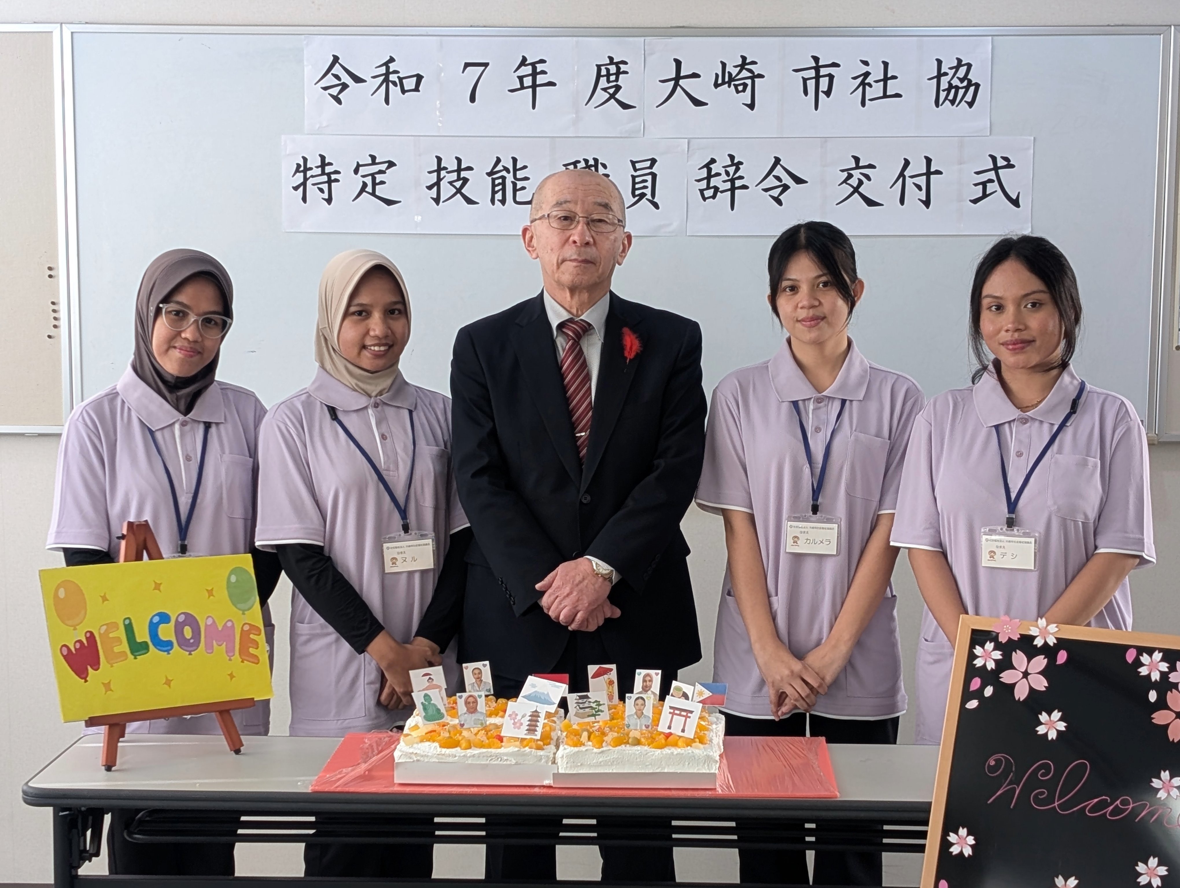 令和7年11月14日(金)、特別養護老人ホーム敬風園にて、特別技能職員4名(インドネシア)の皆さんのウェルカムパーティーを開催しました。