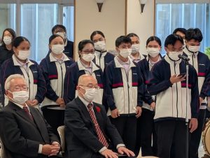 ・本会会長、副会長、常務理事、広報室長おおさきちゃん、職員