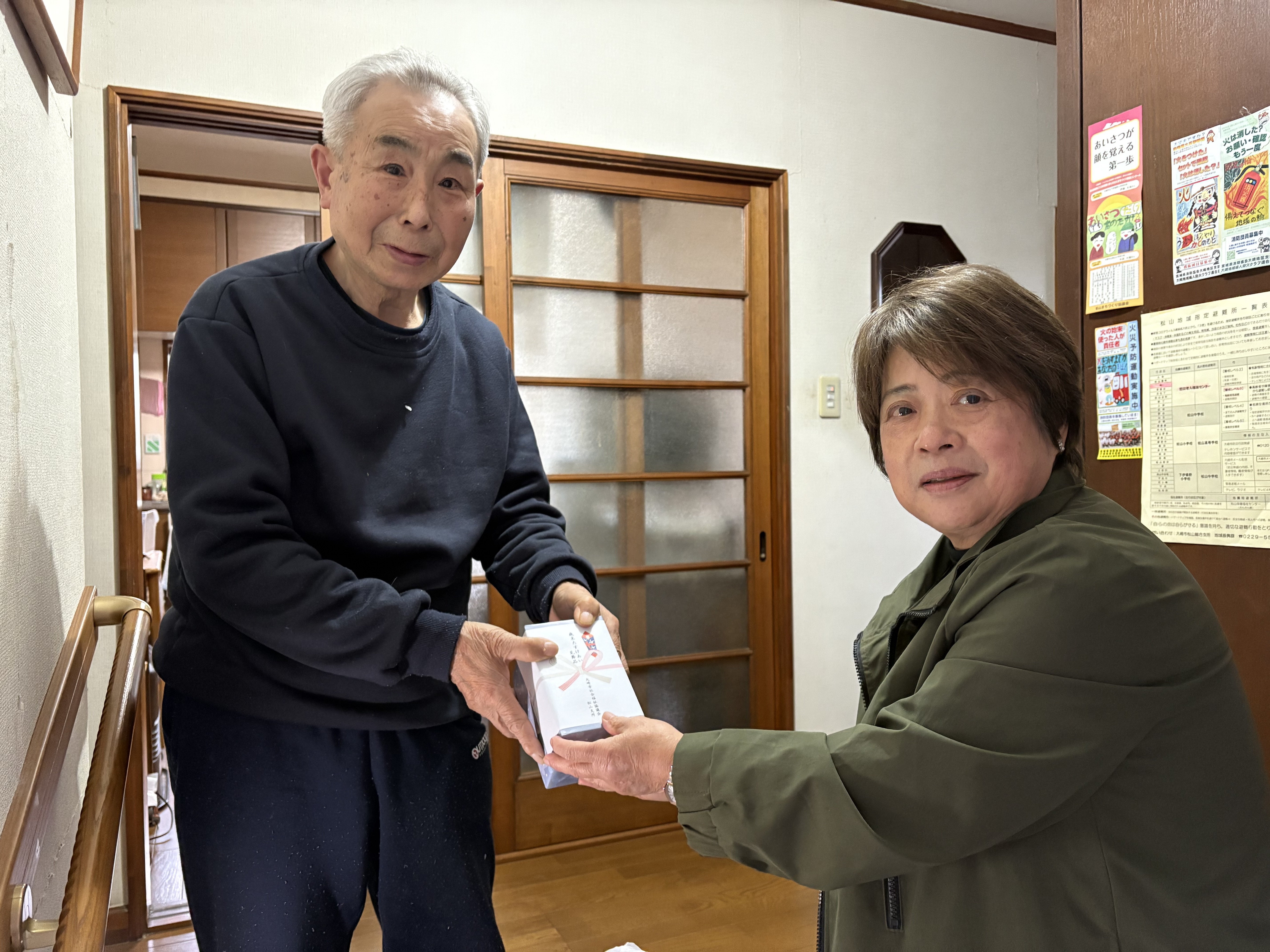今年も訪問先で、対象者の皆様方から「毎年いただいたシクラメンの鉢花を育てるのがとても楽しみです」といった声や「缶詰セットは雪で買い物に出かけられない時などすごく助かります」「子供たちが書いたメッセージカードを毎年楽しみに読ませていただいています」といった声も聞かれるなど、この事業を通じて日頃の見守り活動や子供たちとの繋がりの重要性を改めて実感出来ました。