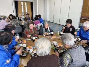 演芸の後は、参加者の皆さんと民生委員の方々がテーブルを囲み、昼食をとりながら歓談を楽しみました。