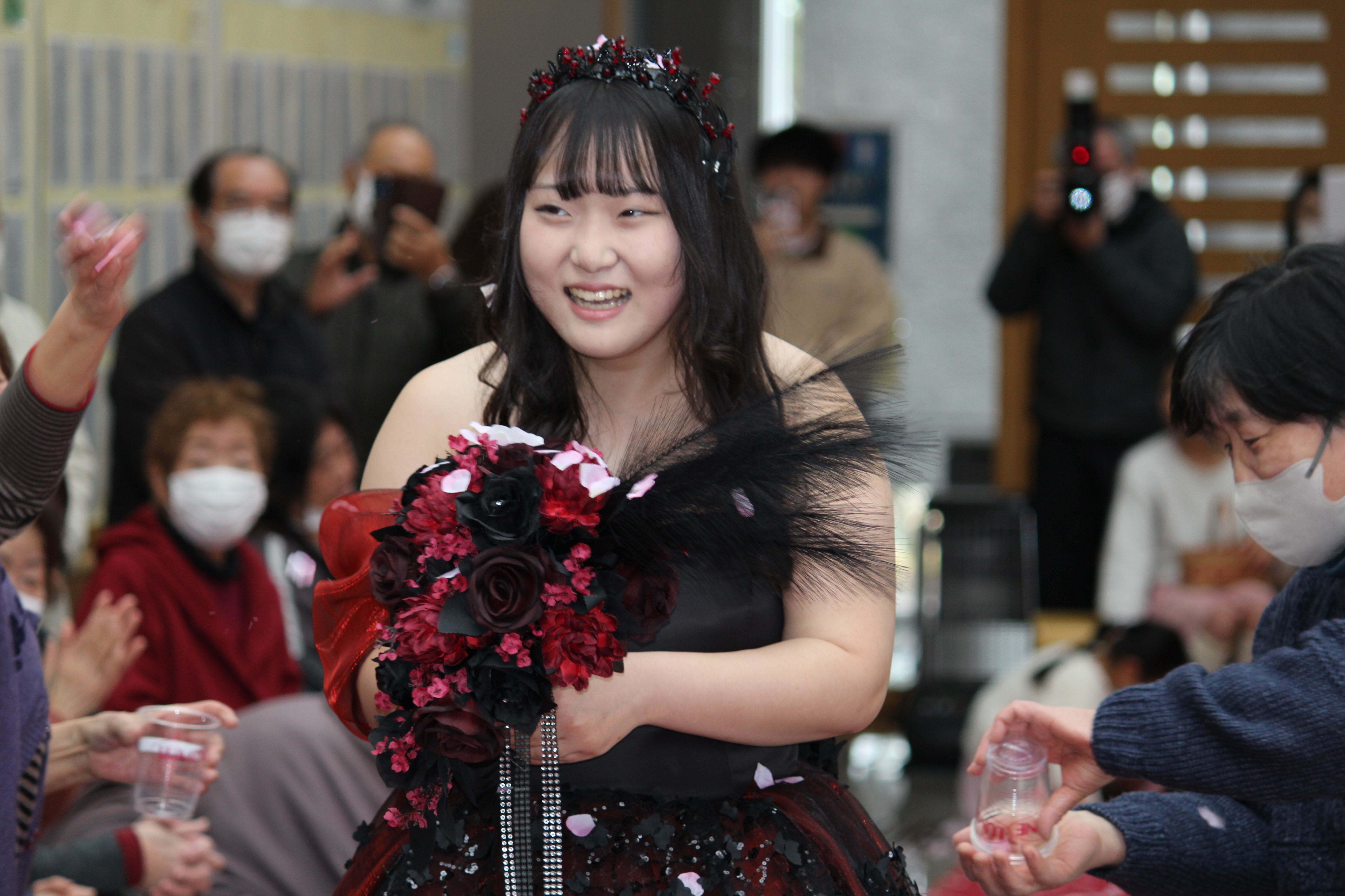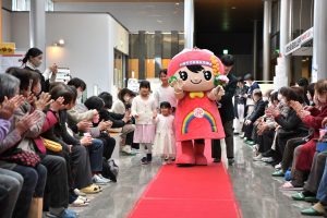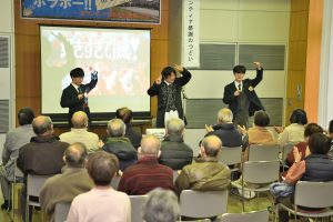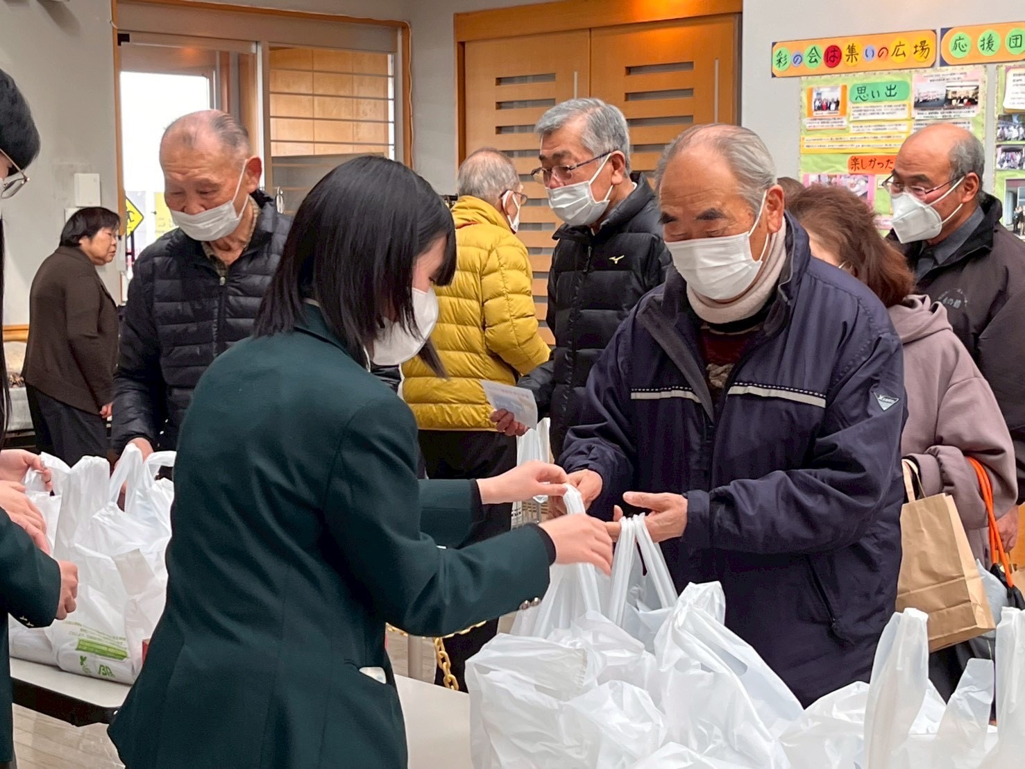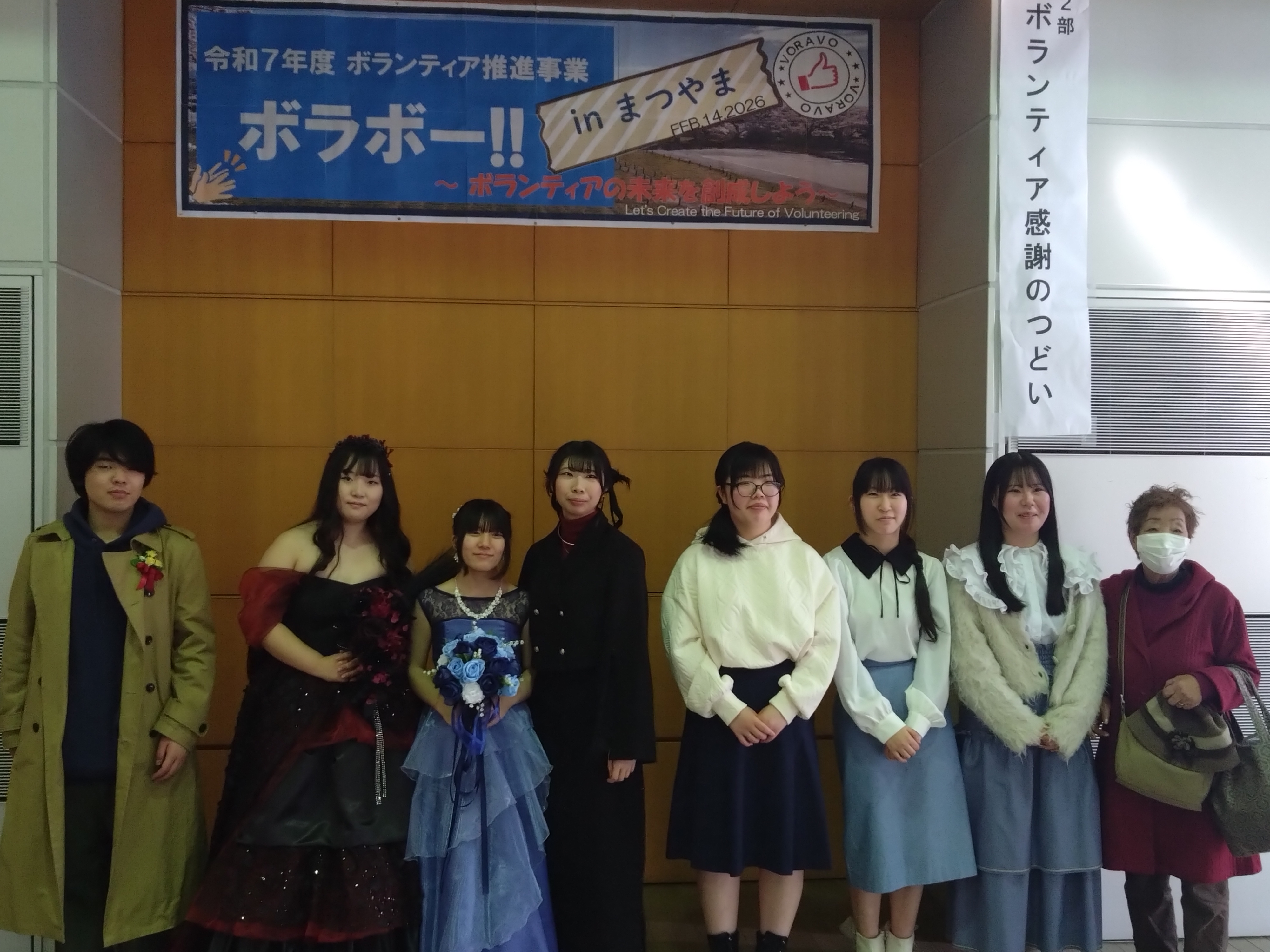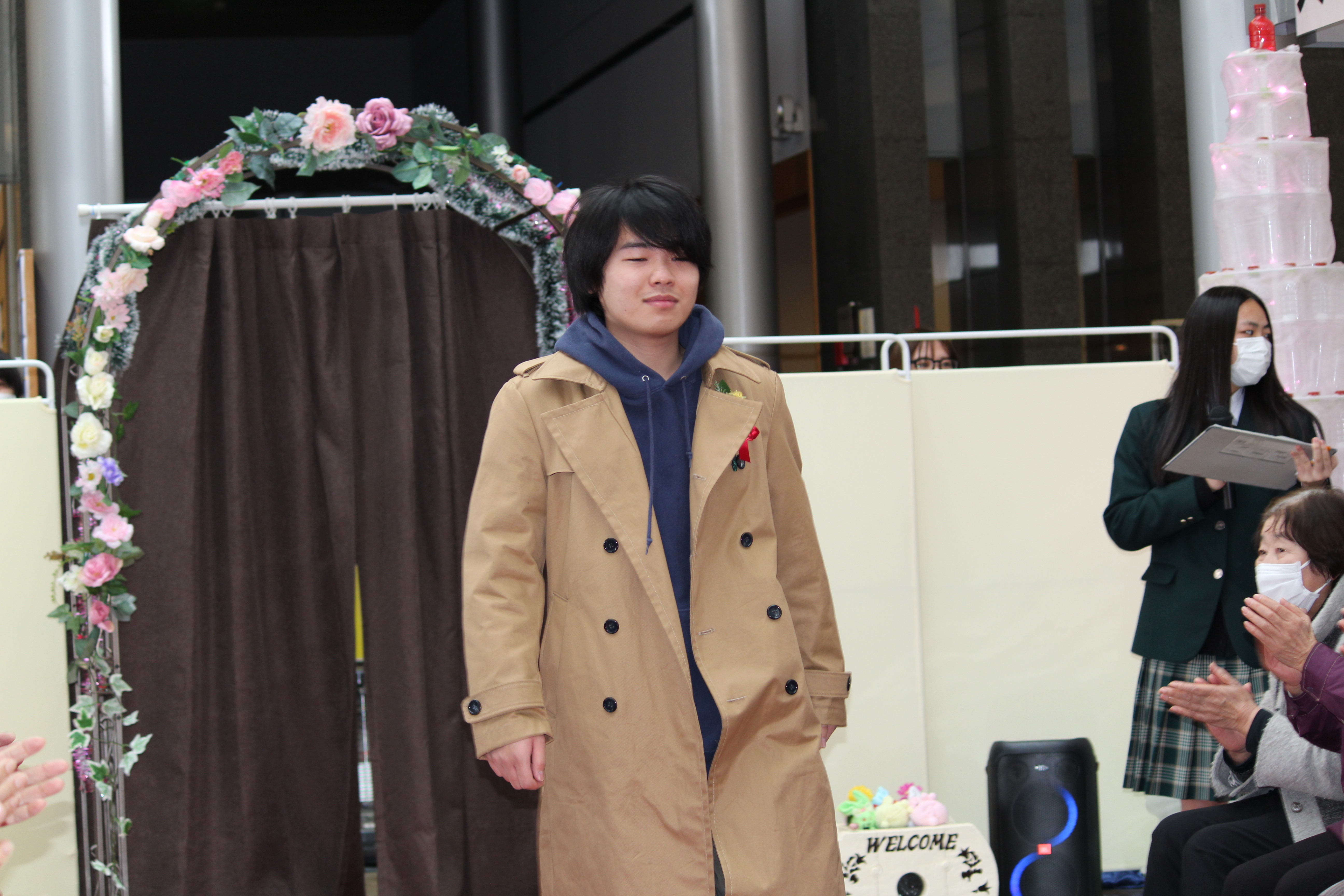 第2部は「ボランティア感謝のつどい」として、世代間交流事業の様子をスライドで振り返りました。また、松山高等学校の生徒と地元マルフジ様がコラボレーションして作成した「ぷくぷく満腹弁当」の販売や、生徒によるファッションショー、お楽しみ抽選会を行い、ボランティアの皆様へ感謝の意を伝えました。