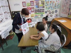 事業所㏚ポスターや利用者の創作物、おおさき福祉の心コンクール鳴子温泉地域入賞作品、防災備品展示のほか、防災クイズを実施しました。クイズに参加した方にはもれなく、防災クッキングができるようにじゃがりことホットケーキミックスをプレゼント(ポテトサラダと蒸しパンが作れます)!「さっそく家で作ってみます!」と言った声も聞かれ、楽しい文化祭の中で参加者に防災に興味を持ってもらうことができました。