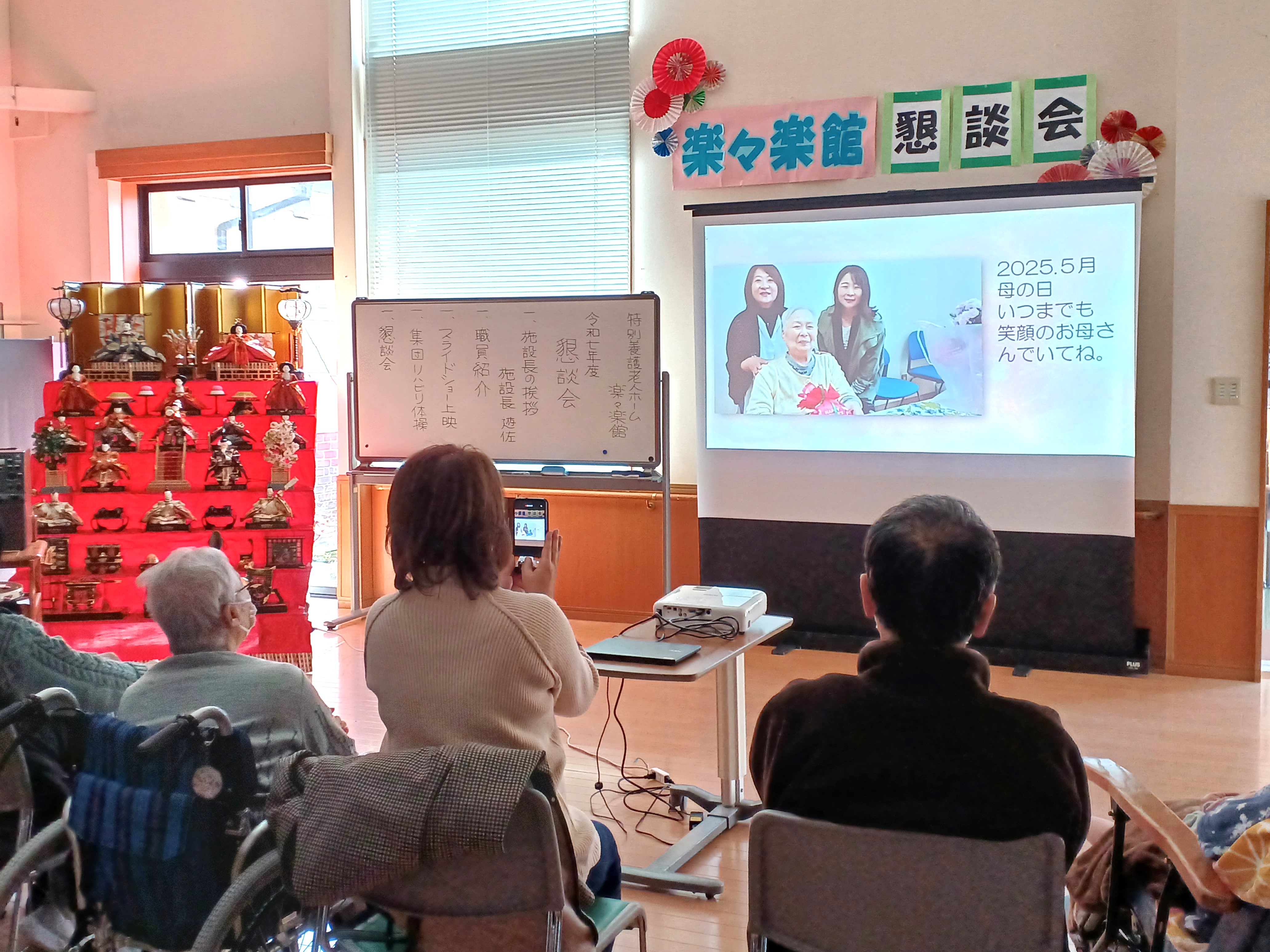 久しぶりの懇談会。ご家族様がお帰りの際には「スライドショーで施設の中で、色々な事をして頂いている様子が見られてよかった」や「家族が参加できる行事は ありがたい。今後もぜひ参加したいです」などのお話しも聞くことができ、ご利用者様とご家族様、そして職員との交流を持てた大変貴重なお時間でした♪